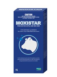 For the treatment and control of moxidectin sensitive internal and external parasites of cattle and for the treatment and control of lungworm and gastrointestinal roundworms of red deer.